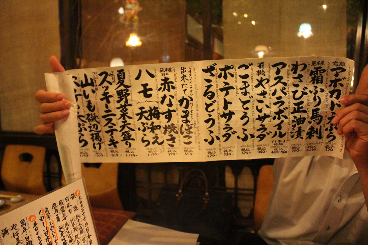 見やすく長〜いメニューが登場。今回一緒に訪れた同僚は身長が