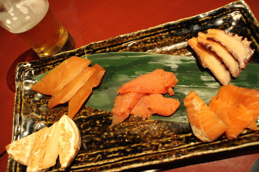 いや〜お酒が進む進む。特に手前右のサーモンは絶妙な塩加減と
