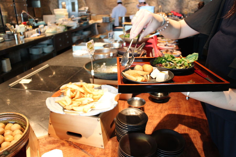 色とりどりの生野菜からお浸し、煮物から炒め物やフライドポテトまで