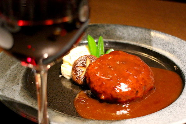 ワインと一緒に登場したのが、お店自慢のハンバーグ。これはここ数年で食べた