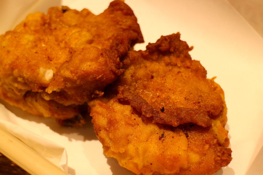 最初は何年かぶりに食べるチキンを。久々の味にとっても懐かしく、ビールが