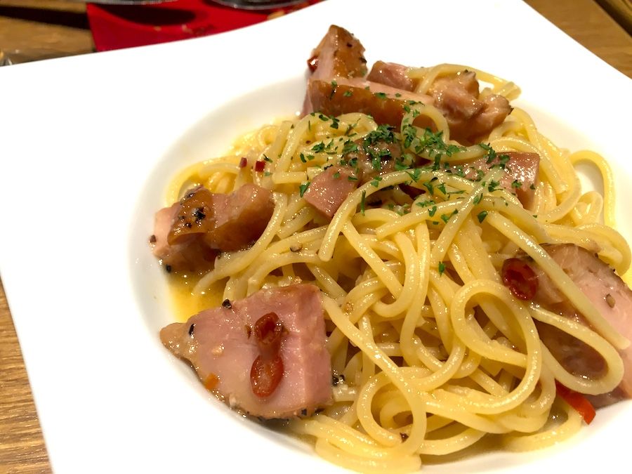 KFC自慢のチキンがたっぷりと入ったペペロンチーノ。味は思った以上に