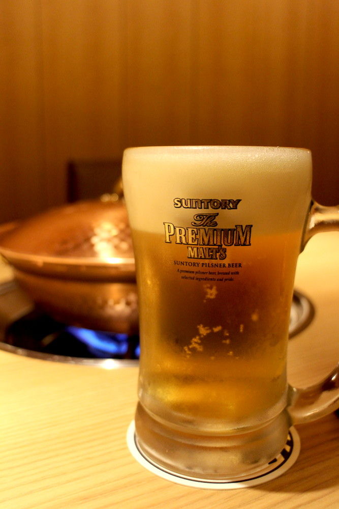 少人数には贅沢すぎる大きさの個室に通され、早速ビールを注文。テーブルの中央にはしゃぶしゃぶ用のお鍋が既にセットされており、今回はしゃぶしゃぶ・お鮨・串揚げの食べ放題とデザートがセットになったお得なメニューをチョイス。最近一休レストランでみることが多く、ここから予約。