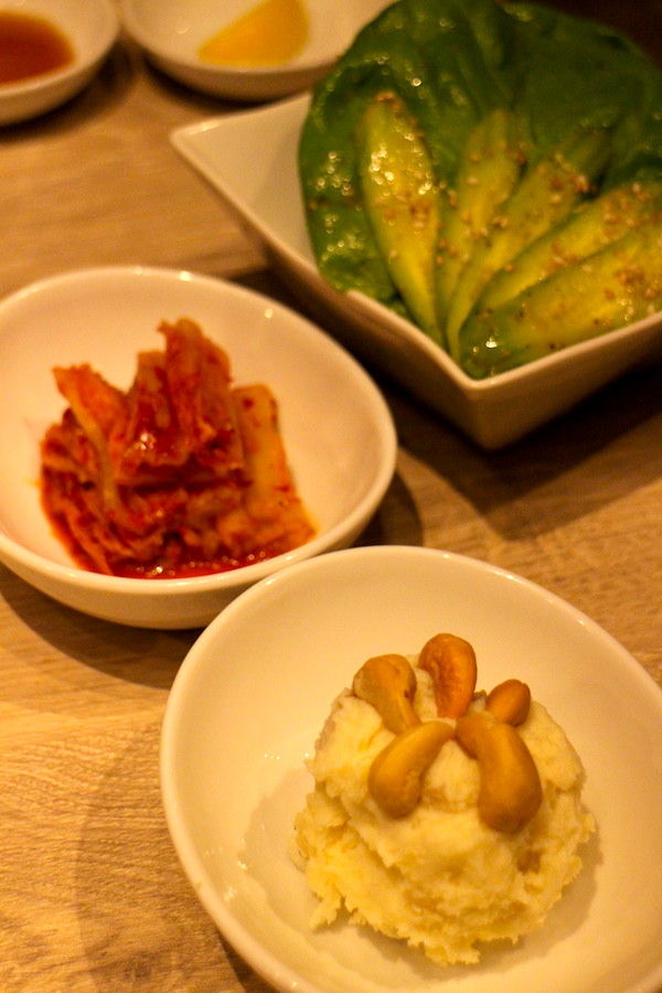今回はお店一番のおすすめの「厳選希少部位盛りコース」を。前菜数種類のあと、お肉やホルモンが続くのだが、その中のフィレを+¥500でシャトーブリアンにできるとのことで注文。そしてテンションマックスになりながら前菜を堪能。