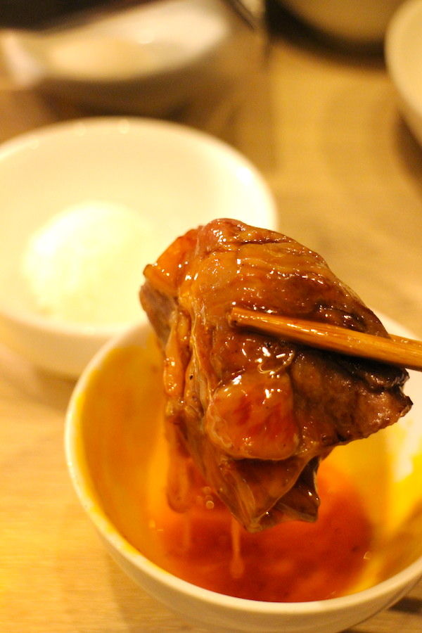 コースの後半は国産A5和牛の希少部位のシオ2種、タレ3種、そして特選ホルモン3種を楽しんだ。どれも上質なお肉で少しお腹がいっぱいだったが、問題なく完食。すべてがとにかく美味しすぎて、終始大満足。