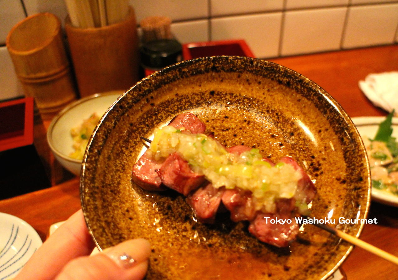 こちらはレバ刺し・・・ではなく、ハツの刺し。レバ刺しを思い出すような食感がたまらない。