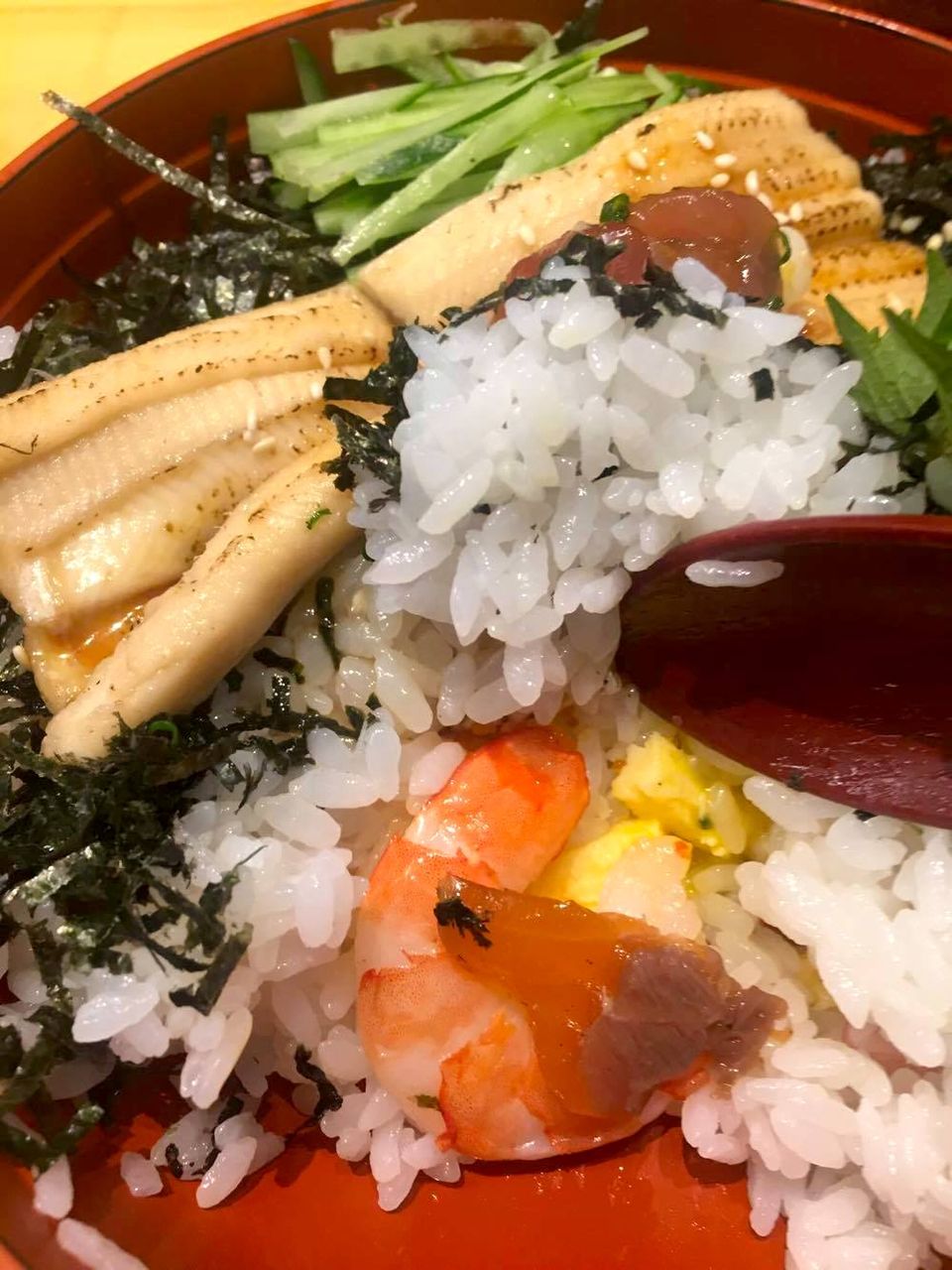 左上にある「づけあなちらし」が名物らしく、迷わずこちらを注文。メニューの一番下に書いてある通り、こちらのちらしのしゃりには10種類の具材が入っている、大変贅沢な一品。これは寿司好きにはたまらない。しかも一人前¥1,500で食べれるというところが◎。サラリーマンにとっては嬉しい値段だ。