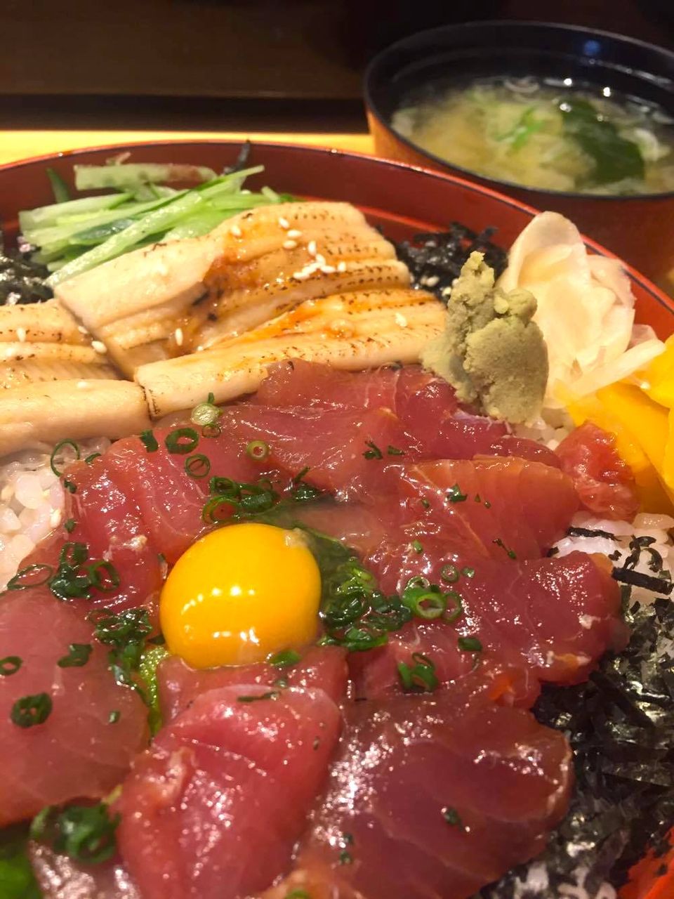 とろけた卵と新鮮で分厚くきられたマグロがたまらない。口に入れた瞬間とろけ、思わず笑顔になってしまう味わい。毎朝仕入れているお魚を新鮮そのもの。