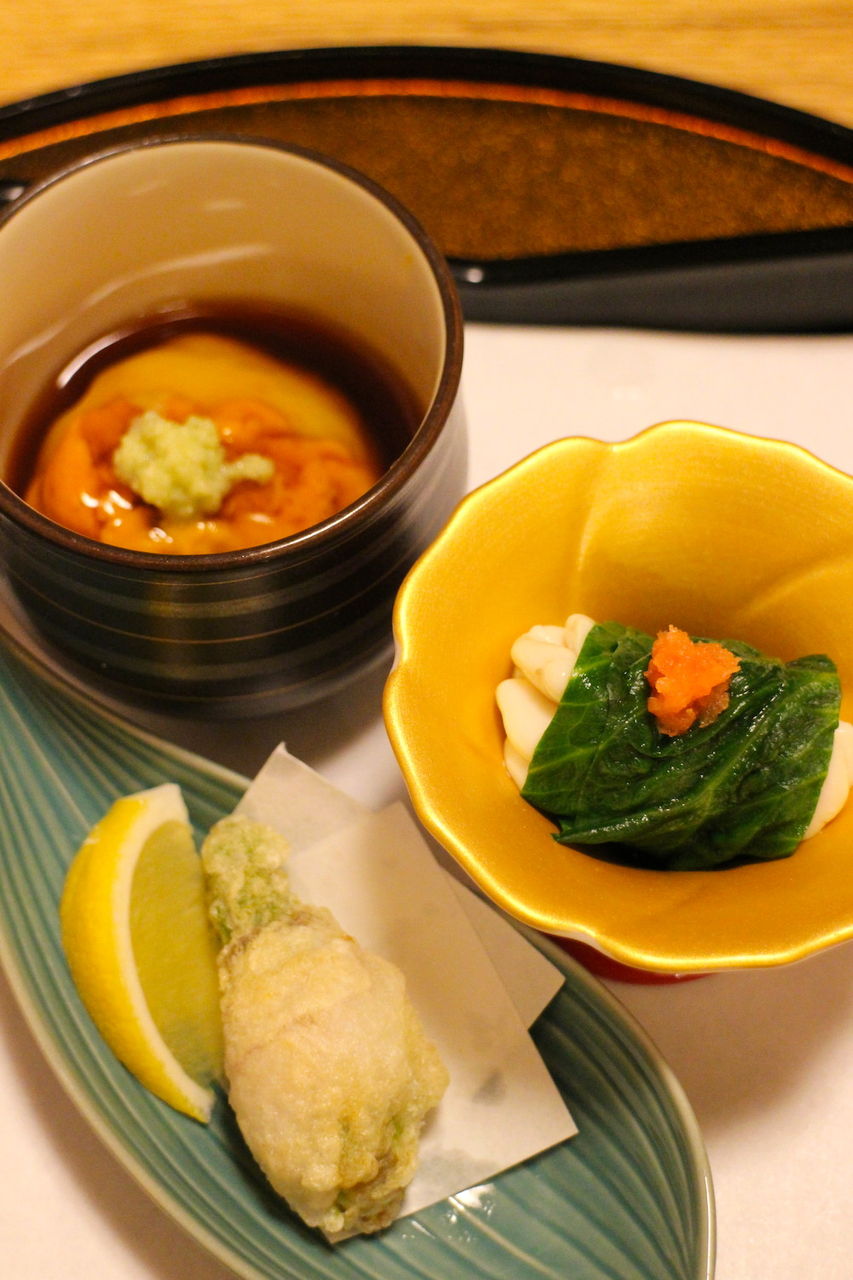 こちらは前菜。白子やたらの芽など、最初から豪華な品々だ。