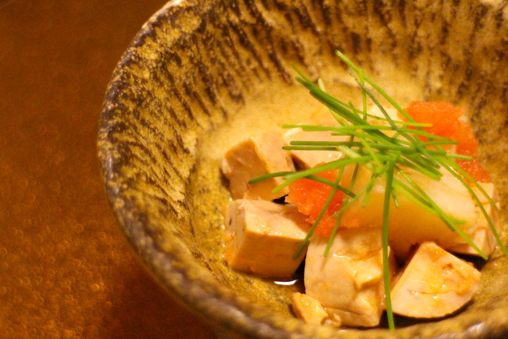こちらは帆立と鮟肝和え。言うまでもなく、お酒のおつまみとして最高の一皿。