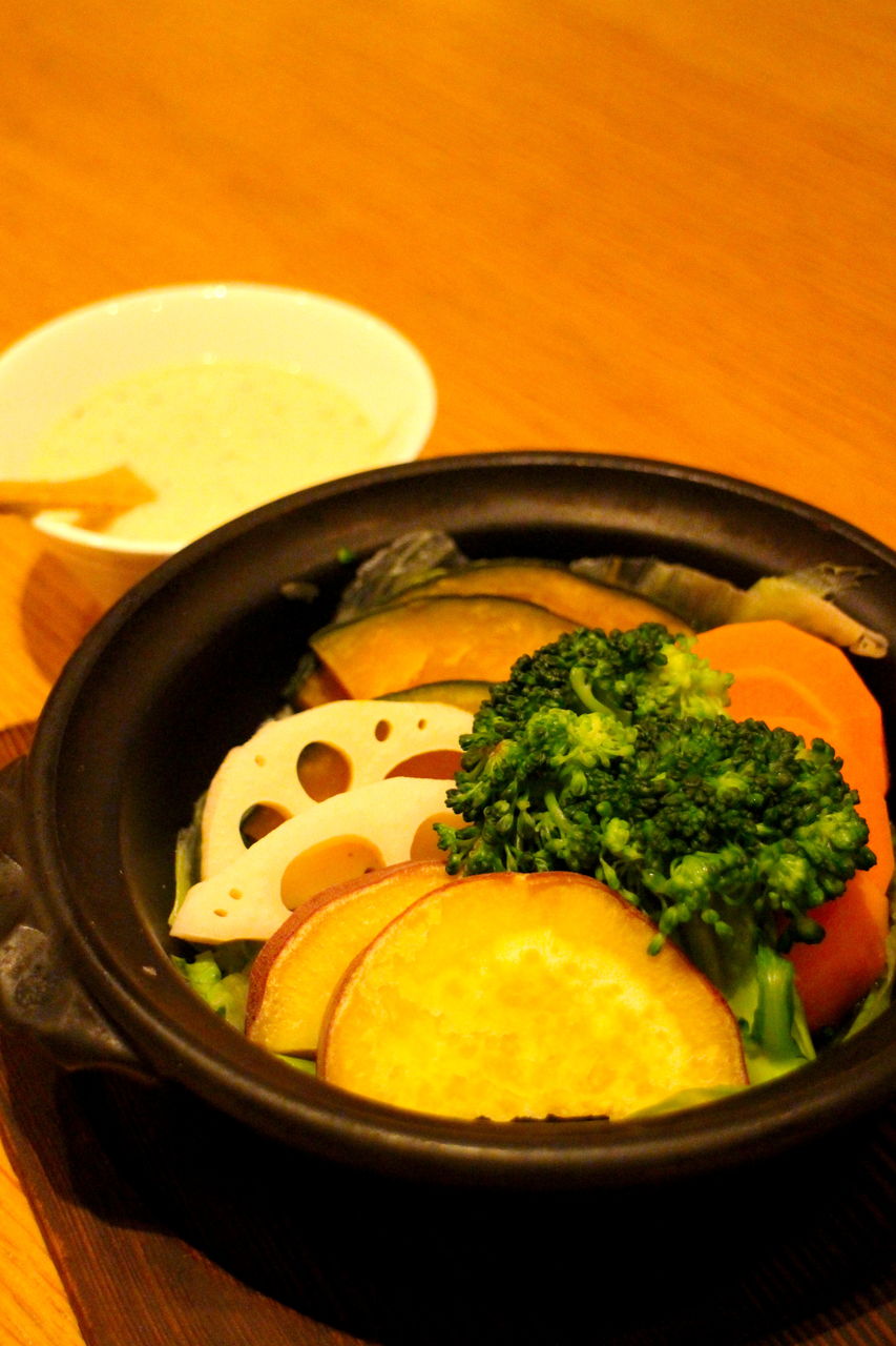 こちらは温野菜withジンジャーソース添え。マヨネーズベースのドレッシングはショウガがたっぷりと入っていて体の芯が温まるのがわかります。女性が好きそうなメニュー。