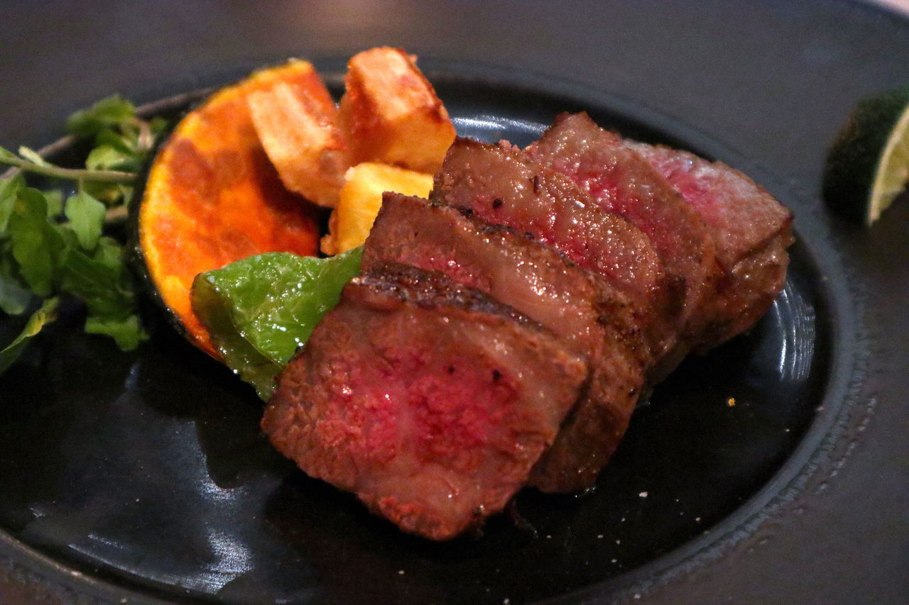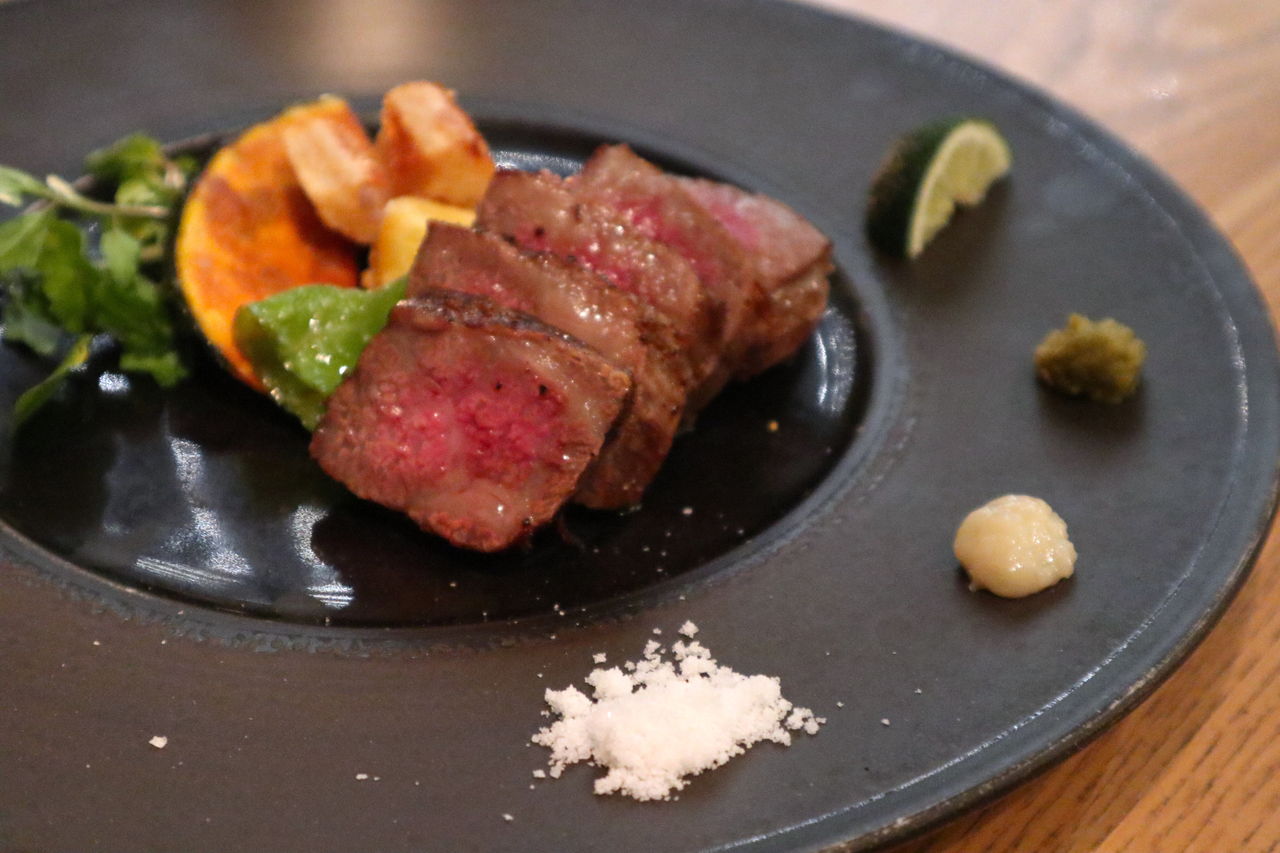 あっという間にお刺身を食べ終わると次はメインのお肉を。